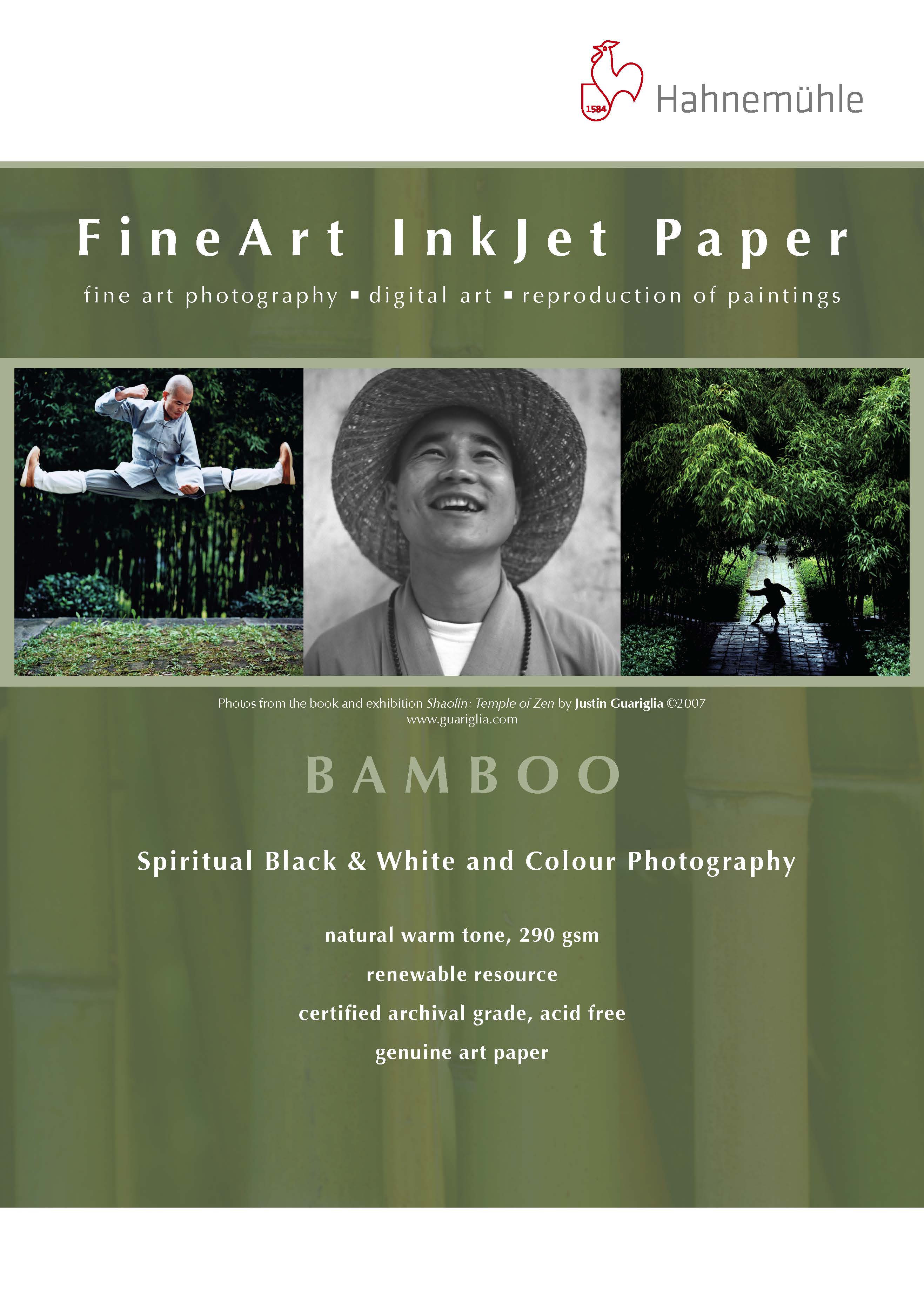 Hahnemühle Bamboo ist das weltweit erste digitale FineArt InkJet-Papier aus Bambusfasern. Bamboo steht für Spiritualität, Natürlichkeit und eine ressourcenschonende Papierproduktion.
