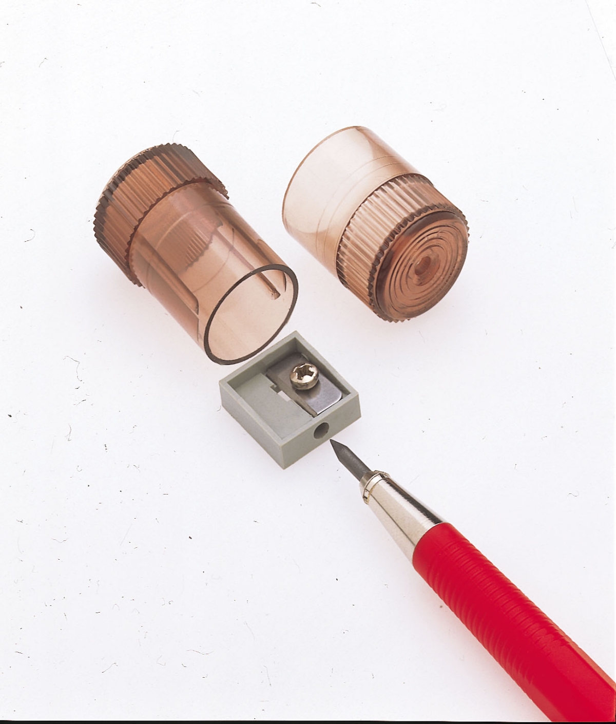 Der Minenspitzer für 2 mm Minen ist praktisch zu handhaben. Er befindet sich in einer kleinen, leicht zu öffnenden Dose. Sie nimmt den Graphitstaub auf und die Finger bleiben sauber.