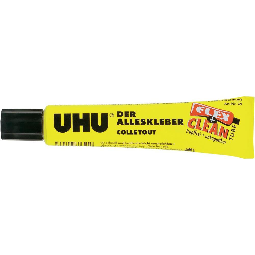 UHU DER ALLESKLBER Jetzt auch in der speziellen, weichen, unkaputtbaren FLEX + CLEAN Tube. Sauber, tropffrei, ergonomisch, unbeulbar und robust !!!
