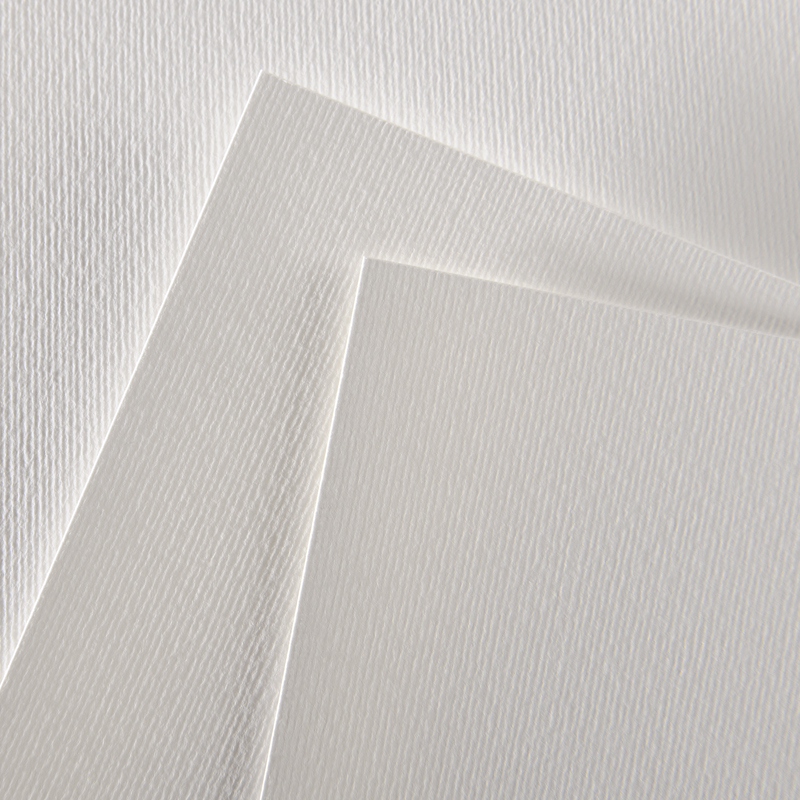 Schweres, gelbliches Spezialpapier mit leicht strukturierter Oberfläche. Das 300g schwere Papier ist zum besseren Heraustrennen der Blätter microperforiert. Geeignet für Aquarell- und Acrylmalerei, Gouache und andere feuchte Farben.