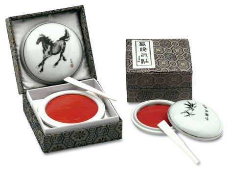 Stempelfarbe zum signieren der Kunstwerke. In einer Porzellandose mit Deckel.