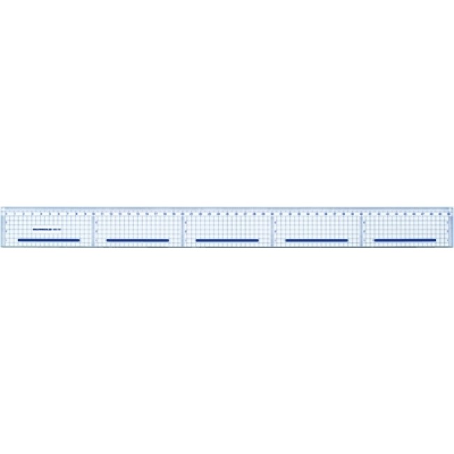Aus glasklarem Plexiglas mit eingelassener Stahlkante. Präzisions-mm-Teilung und blauer Grid-Teilung.