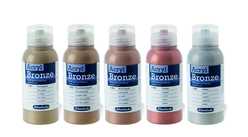 Acryl Bronzen für Künstler die mit echten Metallpigmenten hergestellt werden. Die Bronzen sind verdünnbar und geben dem Verwender die Möglichkeit edle Metalleffekte zu erzielen.