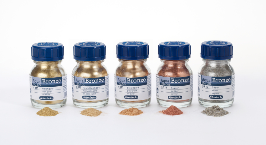 Aquarell-Wasserfarben Bronzen für Künstler die mit echten Metallpigmenten hergestellt werden. Die Bronzen sind verdünnbar und geben dem Verwender die Möglichkeit edle Metalleffekte zu erzielen.