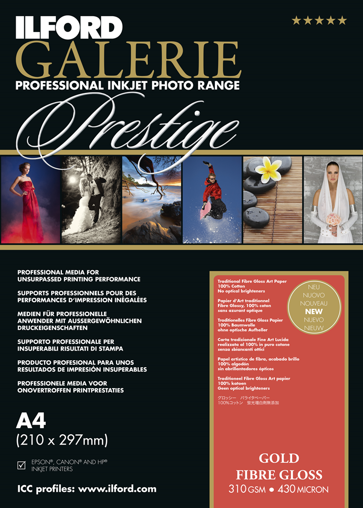 ILFORD Gold Fibre Gloss ist als Blatt- und Rollenware erhältlich. Eine detaillierte Übersicht aller verfügbaren Formate finden Sie unter der Rubrik GALERIE auf www. ilford.com.