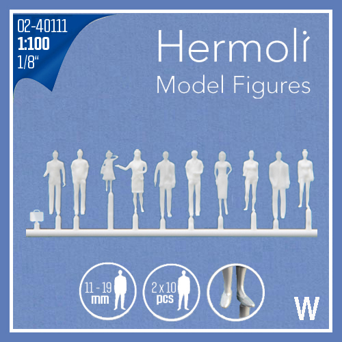 Modellfiguren Polystyrol Hermoli stehend 1:100 / 20 Stück